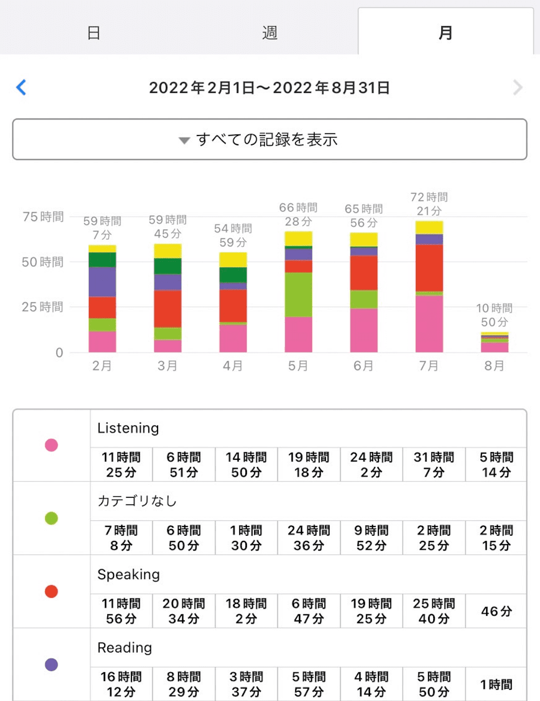 上記によって、学習意欲や学習品質が高まり、受講期間中(5-7月)は学習記録をつけはじめてから数年で、最高記録の学習時間となりました。